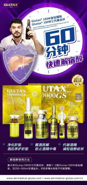 GLUTAX??1800000GS是目前最高顶级高配版组合突破双核酸基因美白抗老法双核酸比单核酸迈向“更安全”及“更高效”的美白法,完成隔绝黑色素生产,改善基因达到“嫩白”不返黑效果。